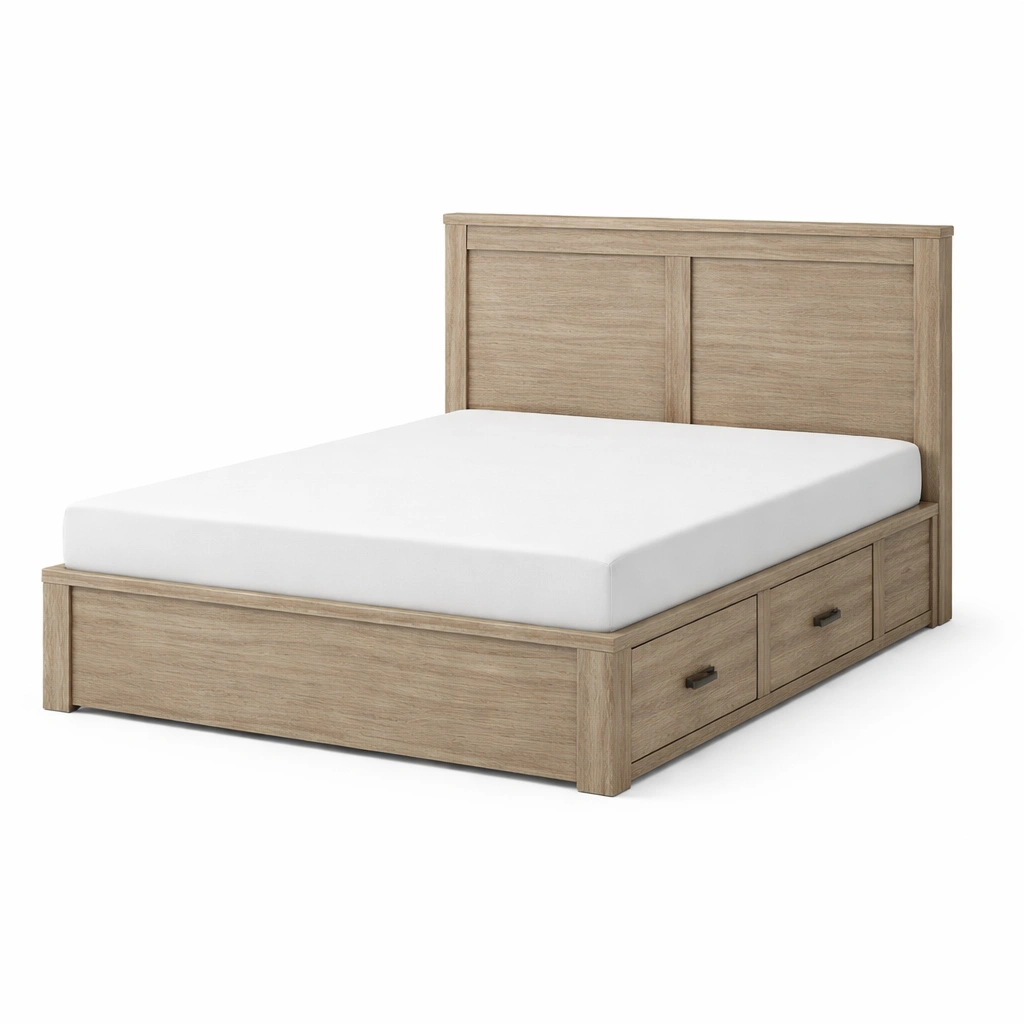Cama con almacenamiento doble de madera de roble
