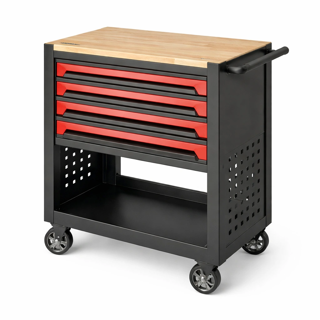 Carro de herramientas de metal con encimera de madera