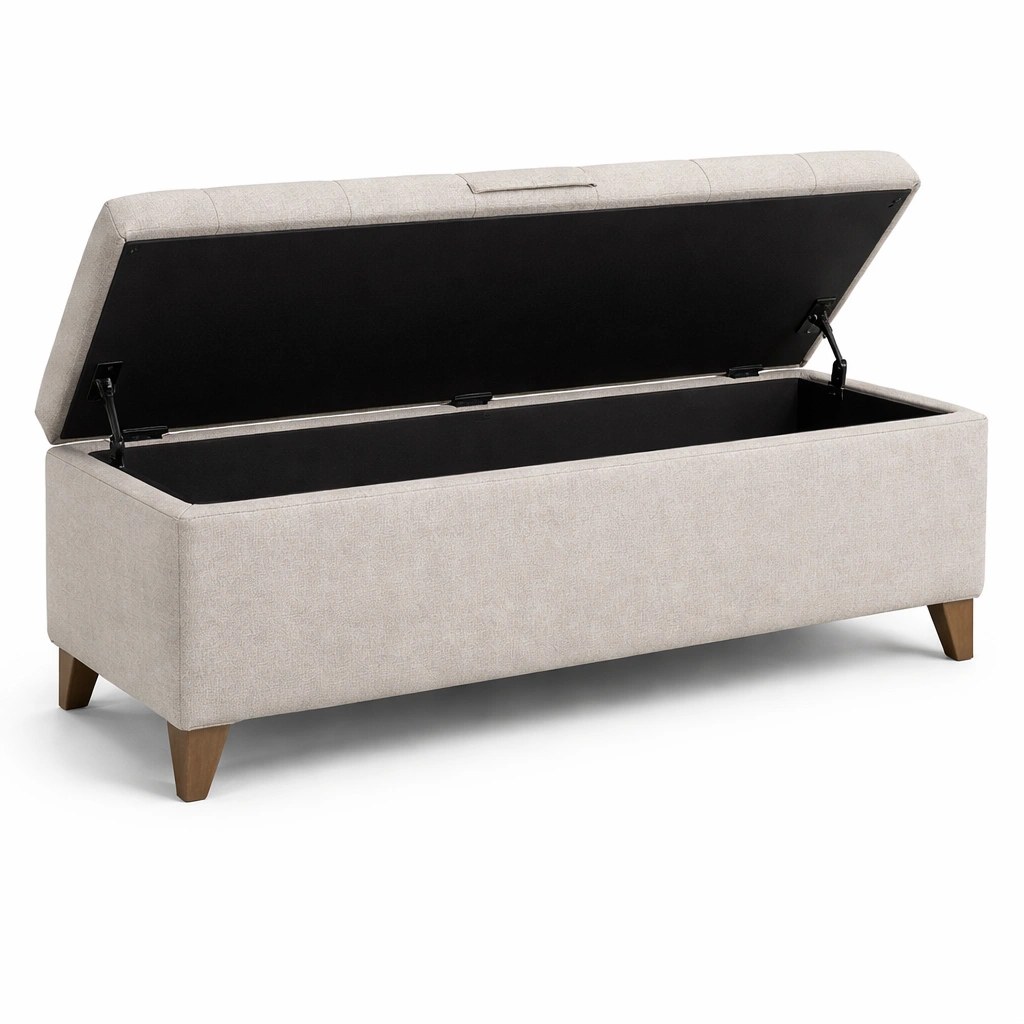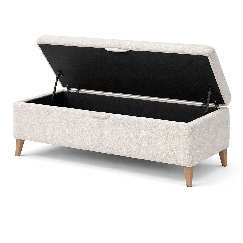 Banco con almacenamiento tapizado de poliéster beige con patas de madera