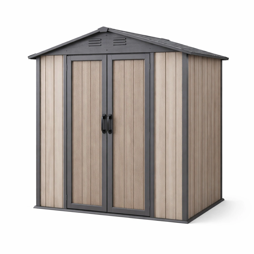 Cobertizo de jardín de resina beige gris 256x243x238 cm
